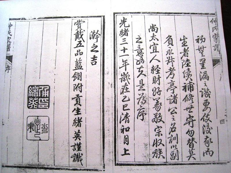 [旧谱新牒] 2011第一帖:光绪甲辰仲家浅《仲氏家谱》首卷 |